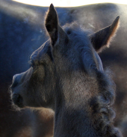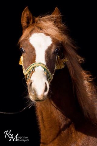 Die Verbindung mit dem Hengst "Uranos" (Al Lahab, The Vision HG, The Verdict HG) von "La Fame Arabians" hat ein sehr typvolles Fohlen mit einem sehr feinem Kopf gebracht.